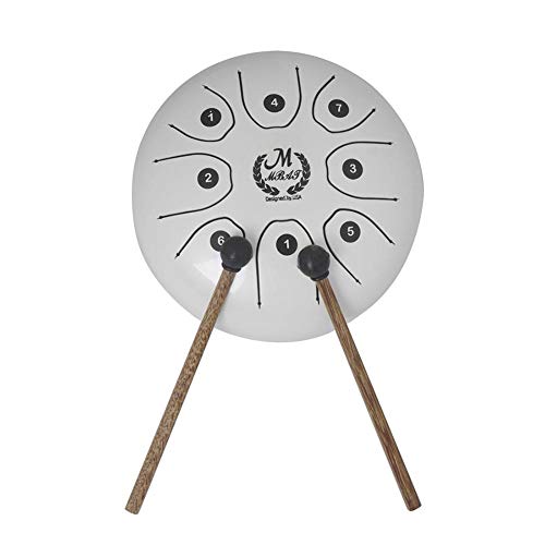 MMBAT Mebite – Mini Tambor de lengua de acero Blanco 5.5 pulgadas – Con palos y bolsa de tela