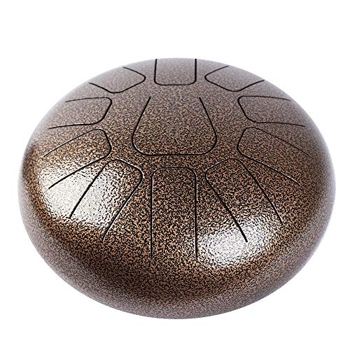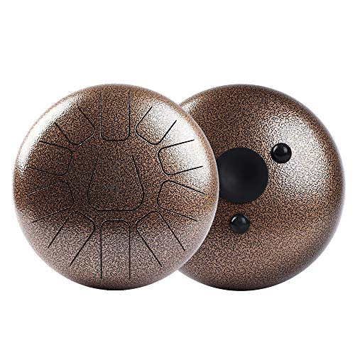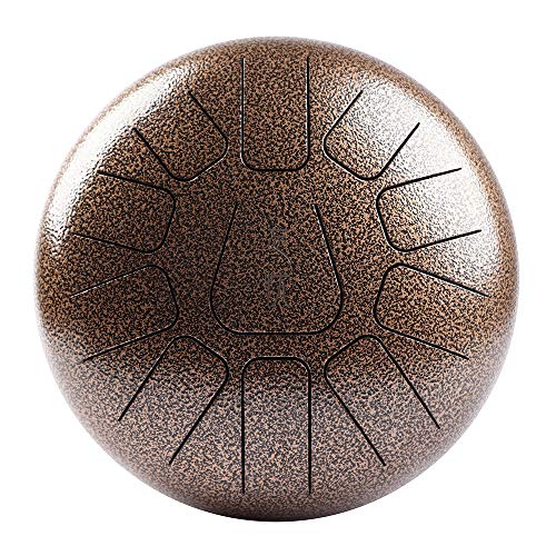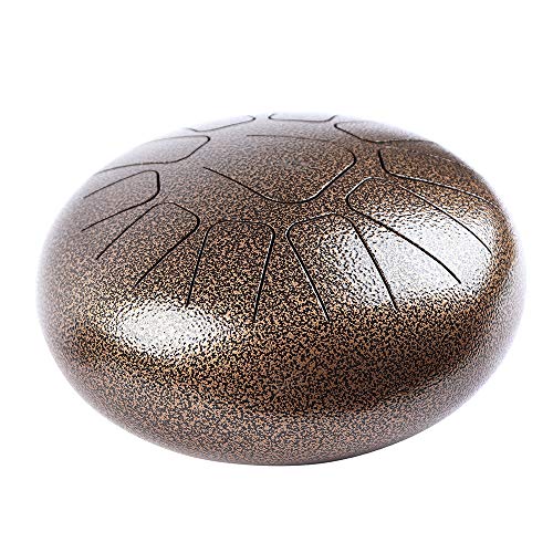 Muslady Tambor de Mano 10 pulgadas Tambor de Lengua de Acero 11 Tonos Instrumento de Percusión Con Mazos de Tambor Carry Bag Nota Sticks Para la Meditación Yoga Zazen Sound Healing (oro antiguo)